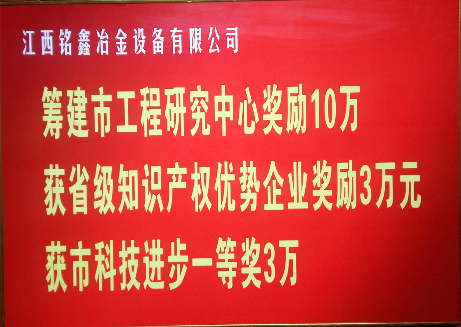 祝賀銘鑫冶金設備有限公司被評選為2016優(yōu)秀企業(yè)家,并獲得籌建市工程研究中心獎勵10萬元,獲得省級知識產(chǎn)權優(yōu)勢企業(yè)獎勵3萬元,獲得市科技進步一等獎3萬元。