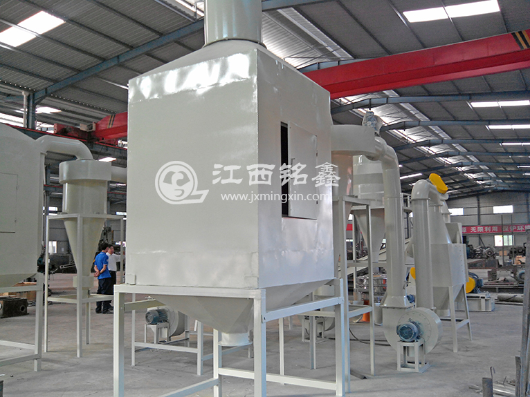 設備采取了干式破碎、粉碎,使廢舊電路板成為金屬和樹脂纖維末混合物,然后通過高壓靜電分離器將金屬與樹脂等非金屬分離的工藝路線。設備優點,噪音小、無需水、無粉塵污染、節約動力,節約人力、絕無廢棄物,金屬及非金屬99%充分回收利用。為防止加工過程中的粉塵污染,設備采用三合一除塵裝置,除塵裝置共有三級除塵:旋風除塵、布袋除塵和空氣凈化器除塵,有效地解決了粉塵污染問題,各項指標均達國家標準。