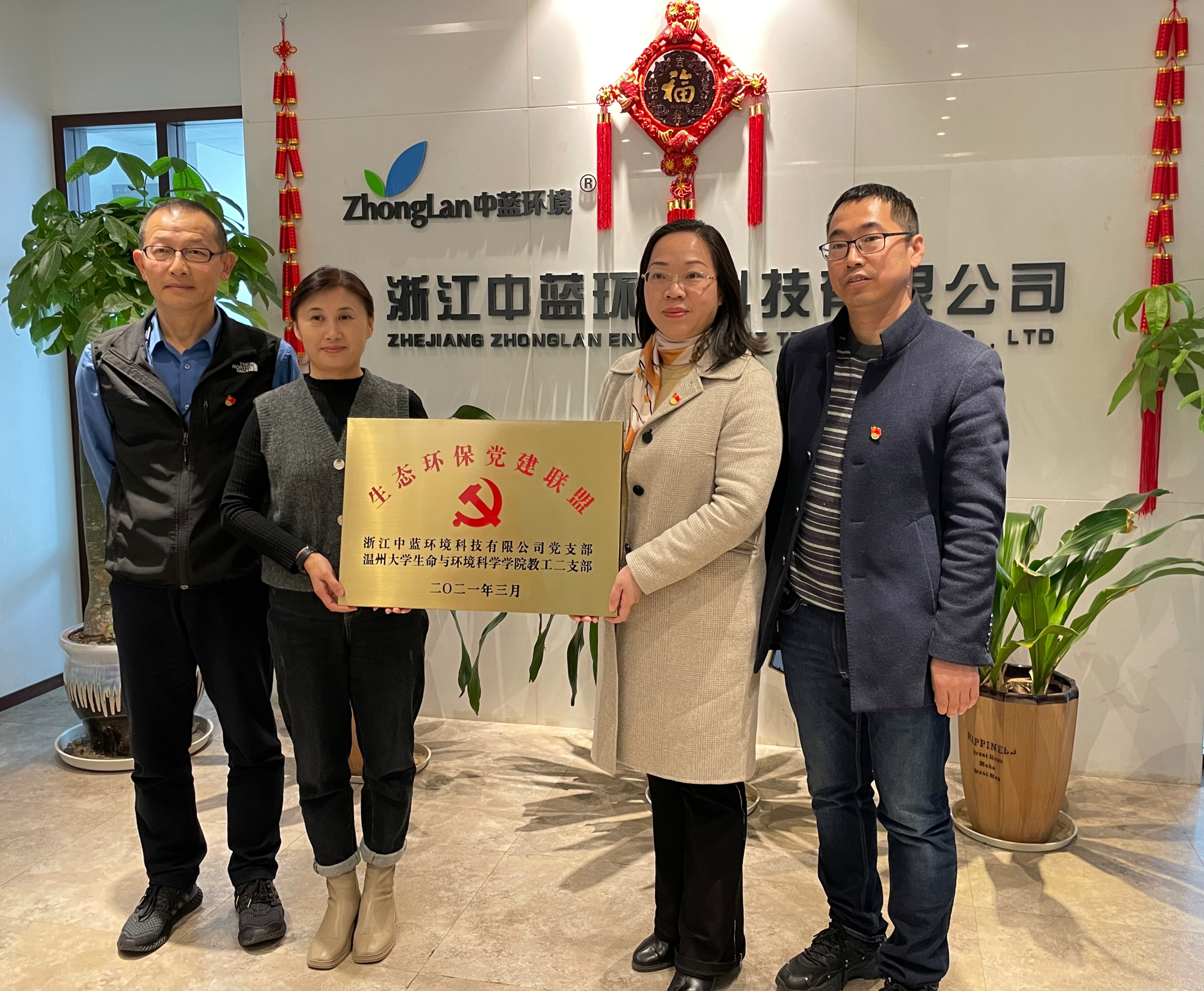 2022年3月3日,溫州大學生命與環境科學學院教工二支部和浙江中藍環境科技有限公司黨支部舉行了“生態環保·黨建聯盟”掛牌儀式。溫州大學生命與環境科學學院黨委書記姜海燕、學院教工二支部書記王奇同浙江中藍環境科技有限公司黨支部書記胡長敏就黨建共建共享、黨建引領交流合作等相關事宜進行了深入探討。